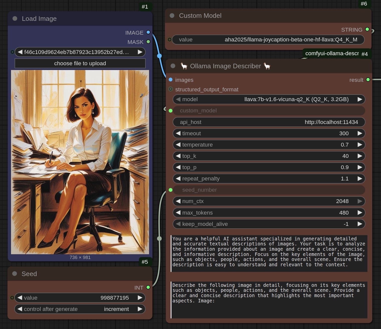 Don't like the output? Change the seed and run it again. Running the "Ollama Image Describer" again produced: