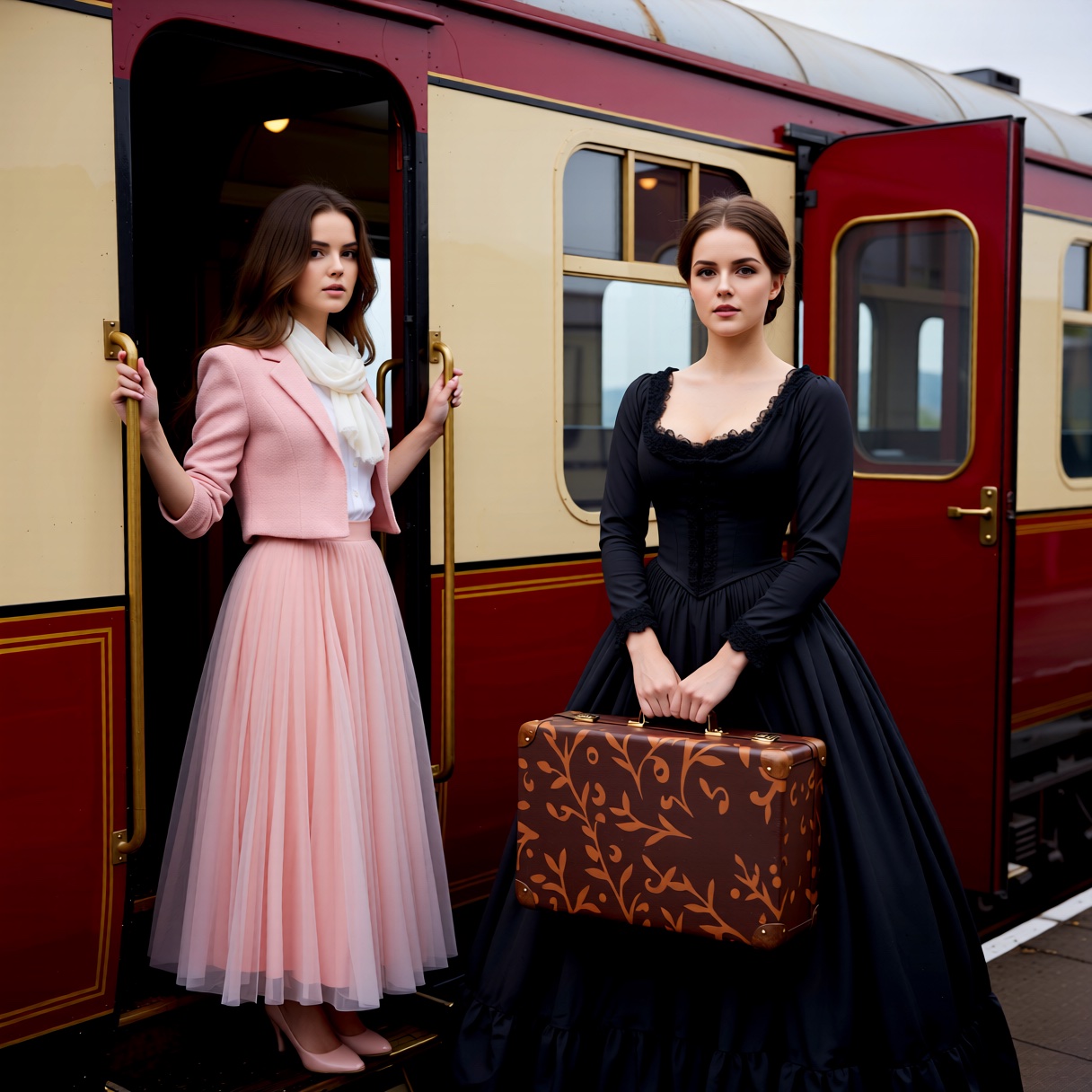 The images are versions of previous renders. Same prompts. With the images of the women, all reference to a background was removed. For the empty train, I used Flux Kontext with the simple prompt to: Remove the woman from the image. Preserve the textures.